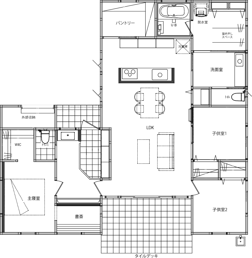 居場所を選んで家族が自由に暮らす平屋